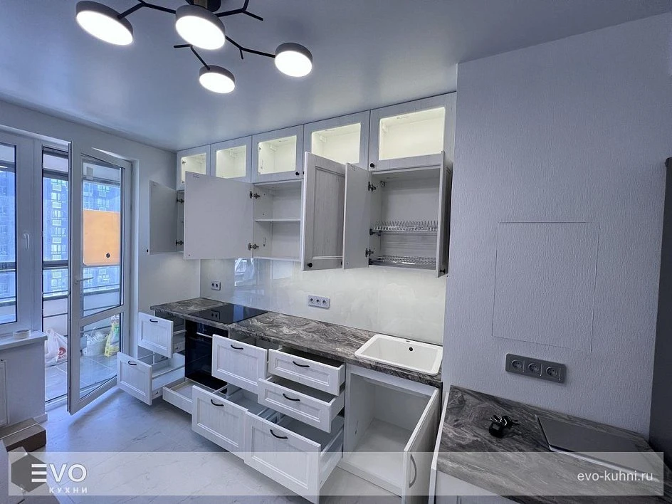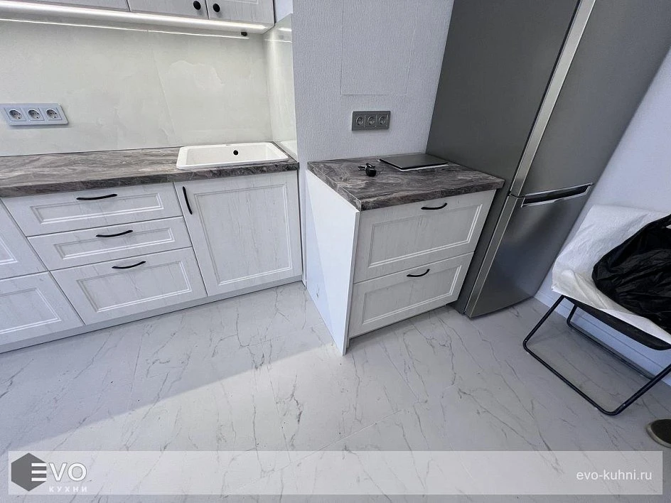 Кухни все изготавливаются по индивидуальному заказу. Мы подготовим дизайн-проект под любое помещение и конфигурацию. В зависимости от выбранных фасадов сможем изготовить нестандартные модули и размеры. Однако есть редкие исключения видов фасадов, по которым невозможны нестандарты, об этом вас предупредит дизайнер при выборе материалов для проекта.