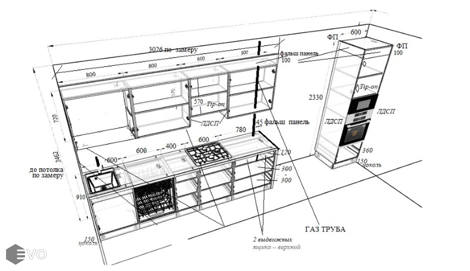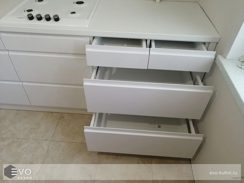 Кухни все изготавливаются по индивидуальному заказу. Мы подготовим дизайн-проект под любое помещение и конфигурацию. В зависимости от выбранных фасадов сможем изготовить нестандартные модули и размеры. Однако есть редкие исключения видов фасадов, по которым невозможны нестандарты, об этом вас предупредит дизайнер при выборе материалов для проекта.