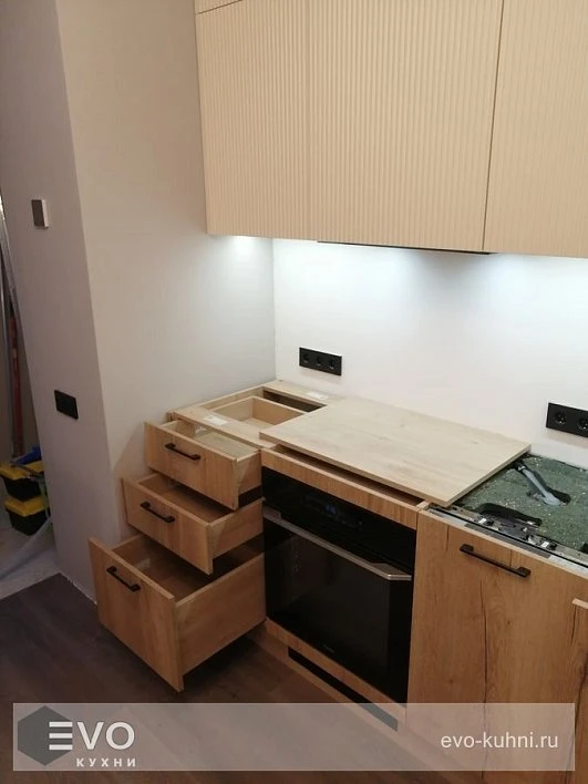 Кухни все изготавливаются по индивидуальному заказу. Мы подготовим дизайн-проект под любое помещение и конфигурацию. В зависимости от выбранных фасадов сможем изготовить нестандартные модули и размеры. Однако есть редкие исключения видов фасадов, по которым невозможны нестандарты, об этом вас предупредит дизайнер при выборе материалов для проекта.