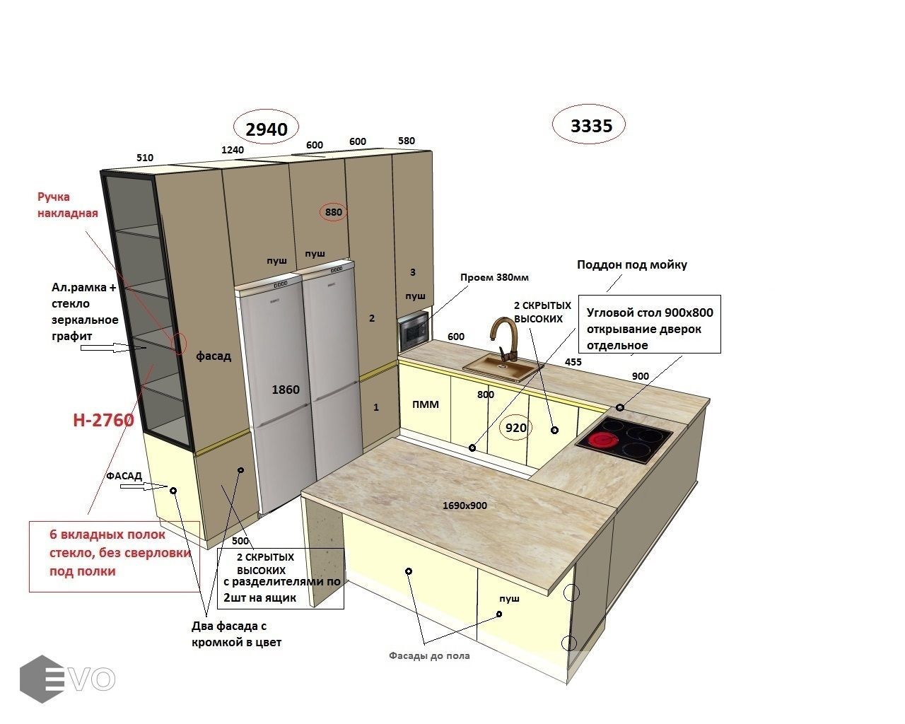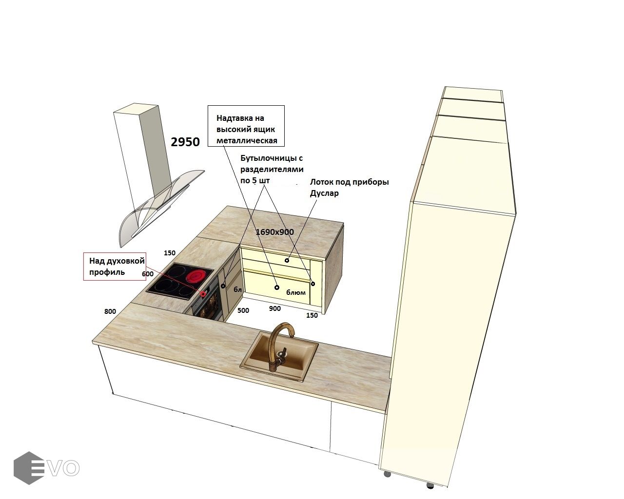 Кухни все изготавливаются по индивидуальному заказу. Мы подготовим дизайн-проект под любое помещение и конфигурацию. В зависимости от выбранных фасадов сможем изготовить нестандартные модули и размеры. Однако есть редкие исключения видов фасадов, по которым невозможны нестандарты, об этом вас предупредит дизайнер при выборе материалов для проекта.