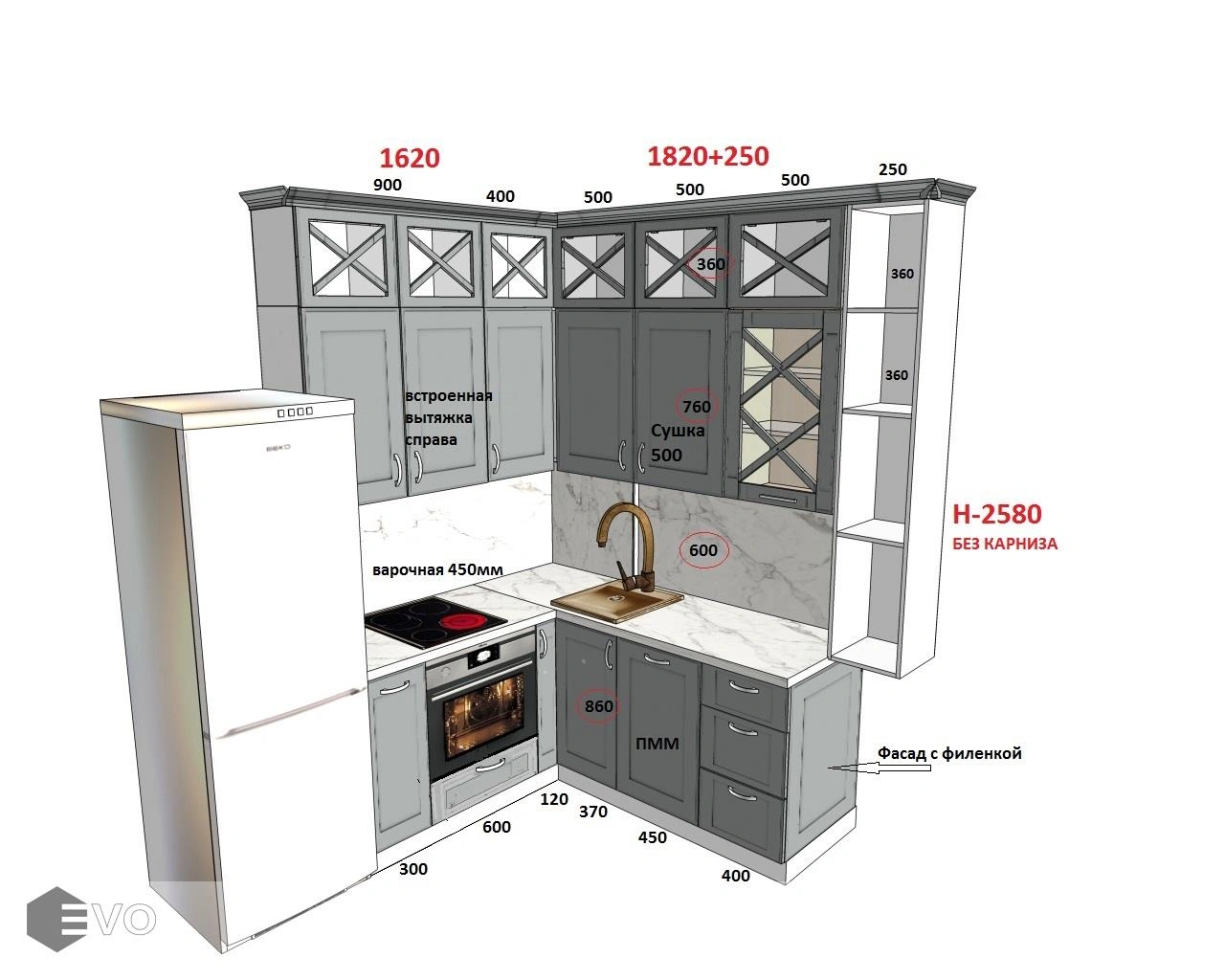 Кухни все изготавливаются по индивидуальному заказу. Мы подготовим дизайн-проект под любое помещение и конфигурацию. В зависимости от выбранных фасадов сможем изготовить нестандартные модули и размеры. Однако есть редкие исключения видов фасадов, по которым невозможны нестандарты, об этом вас предупредит дизайнер при выборе материалов для проекта.