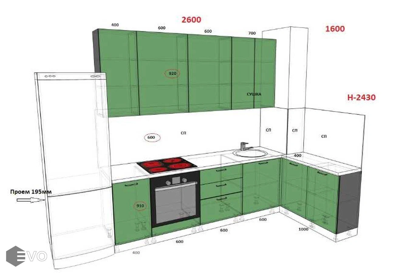Кухни все изготавливаются по индивидуальному заказу. Мы подготовим дизайн-проект под любое помещение и конфигурацию. В зависимости от выбранных фасадов сможем изготовить нестандартные модули и размеры. Однако есть редкие исключения видов фасадов, по которым невозможны нестандарты, об этом вас предупредит дизайнер при выборе материалов для проекта.