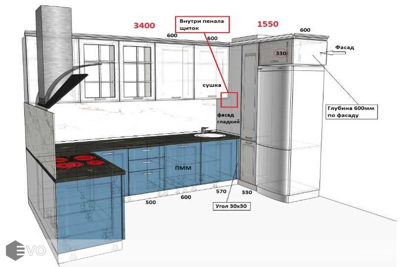Кухни все изготавливаются по индивидуальному заказу. Мы подготовим дизайн-проект под любое помещение и конфигурацию. В зависимости от выбранных фасадов сможем изготовить нестандартные модули и размеры. Однако есть редкие исключения видов фасадов, по которым невозможны нестандарты, об этом вас предупредит дизайнер при выборе материалов для проекта.