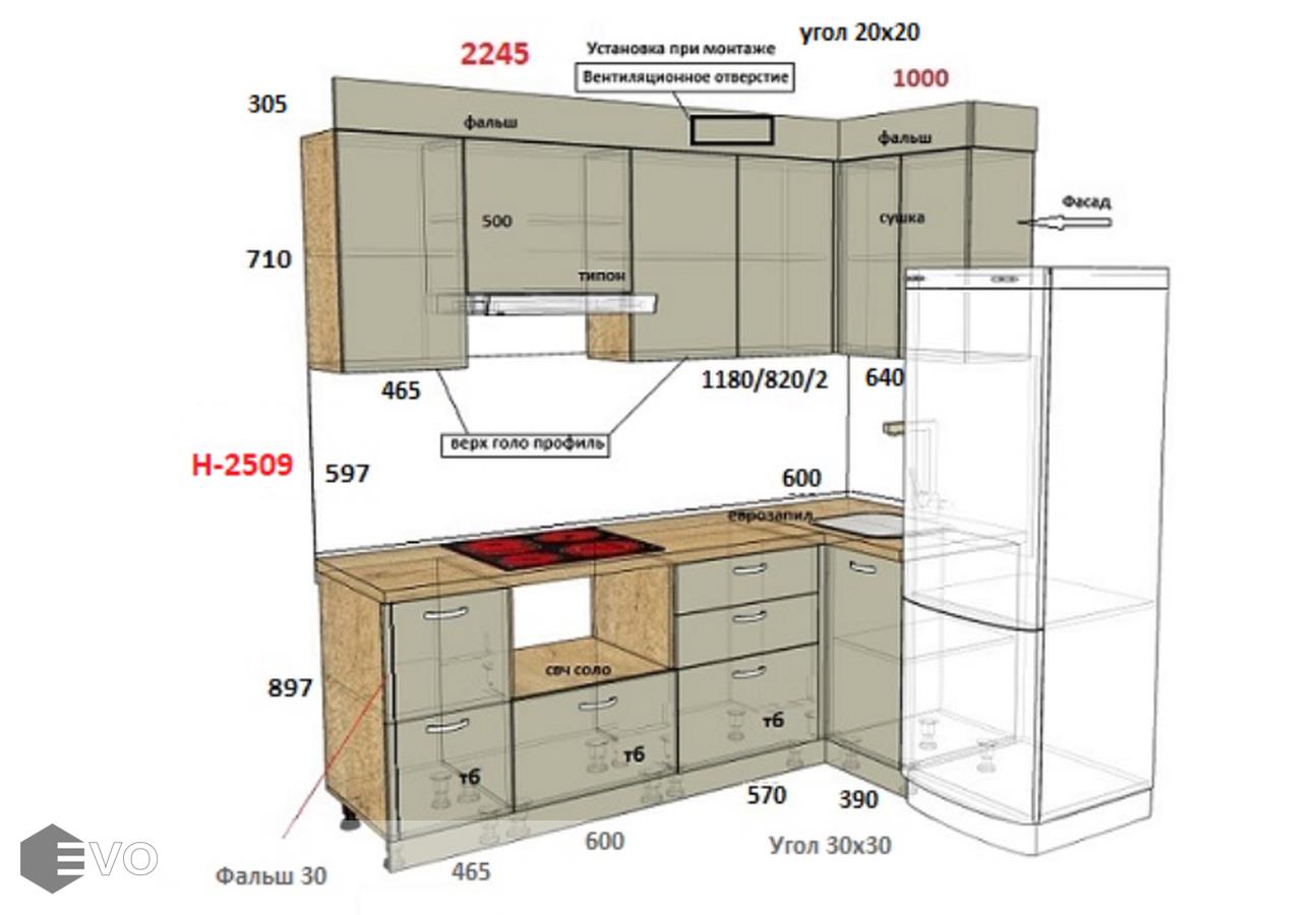 Кухни все изготавливаются по индивидуальному заказу. Мы подготовим дизайн-проект под любое помещение и конфигурацию. В зависимости от выбранных фасадов сможем изготовить нестандартные модули и размеры. Однако есть редкие исключения видов фасадов, по которым невозможны нестандарты, об этом вас предупредит дизайнер при выборе материалов для проекта.