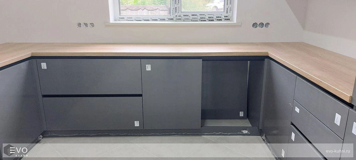 Кухни все изготавливаются по индивидуальному заказу. Мы подготовим дизайн-проект под любое помещение и конфигурацию. В зависимости от выбранных фасадов сможем изготовить нестандартные модули и размеры. Однако есть редкие исключения видов фасадов, по которым невозможны нестандарты, об этом вас предупредит дизайнер при выборе материалов для проекта.