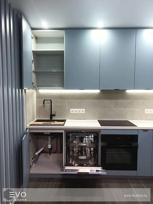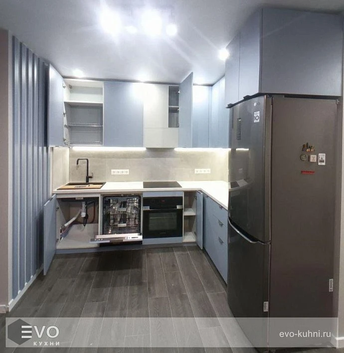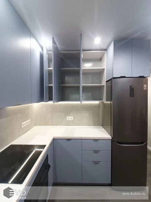 Кухни все изготавливаются по индивидуальному заказу. Мы подготовим дизайн-проект под любое помещение и конфигурацию. В зависимости от выбранных фасадов сможем изготовить нестандартные модули и размеры. Однако есть редкие исключения видов фасадов, по которым невозможны нестандарты, об этом вас предупредит дизайнер при выборе материалов для проекта.