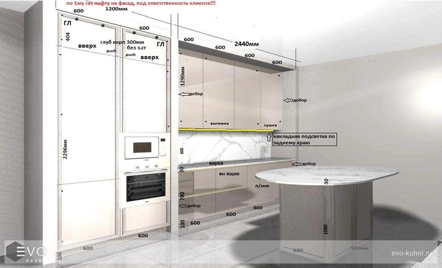 Кухни все изготавливаются по индивидуальному заказу. Мы подготовим дизайн-проект под любое помещение и конфигурацию. В зависимости от выбранных фасадов сможем изготовить нестандартные модули и размеры. Однако есть редкие исключения видов фасадов, по которым невозможны нестандарты, об этом вас предупредит дизайнер при выборе материалов для проекта.