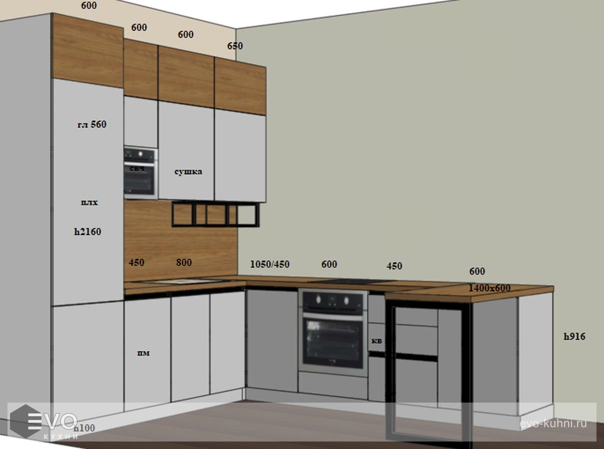 Кухни все изготавливаются по индивидуальному заказу. Мы подготовим дизайн-проект под любое помещение и конфигурацию. В зависимости от выбранных фасадов сможем изготовить нестандартные модули и размеры. Однако есть редкие исключения видов фасадов, по которым невозможны нестандарты, об этом вас предупредит дизайнер при выборе материалов для проекта.