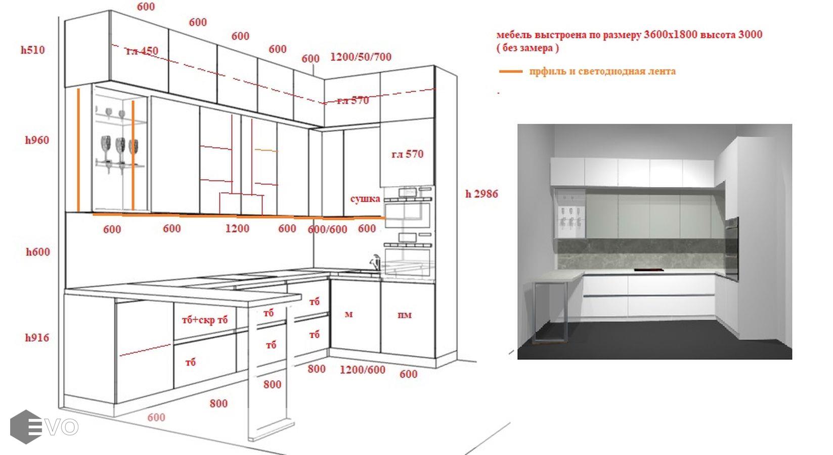 Кухни все изготавливаются по индивидуальному заказу. Мы подготовим дизайн-проект под любое помещение и конфигурацию. В зависимости от выбранных фасадов сможем изготовить нестандартные модули и размеры. Однако есть редкие исключения видов фасадов, по которым невозможны нестандарты, об этом вас предупредит дизайнер при выборе материалов для проекта.
