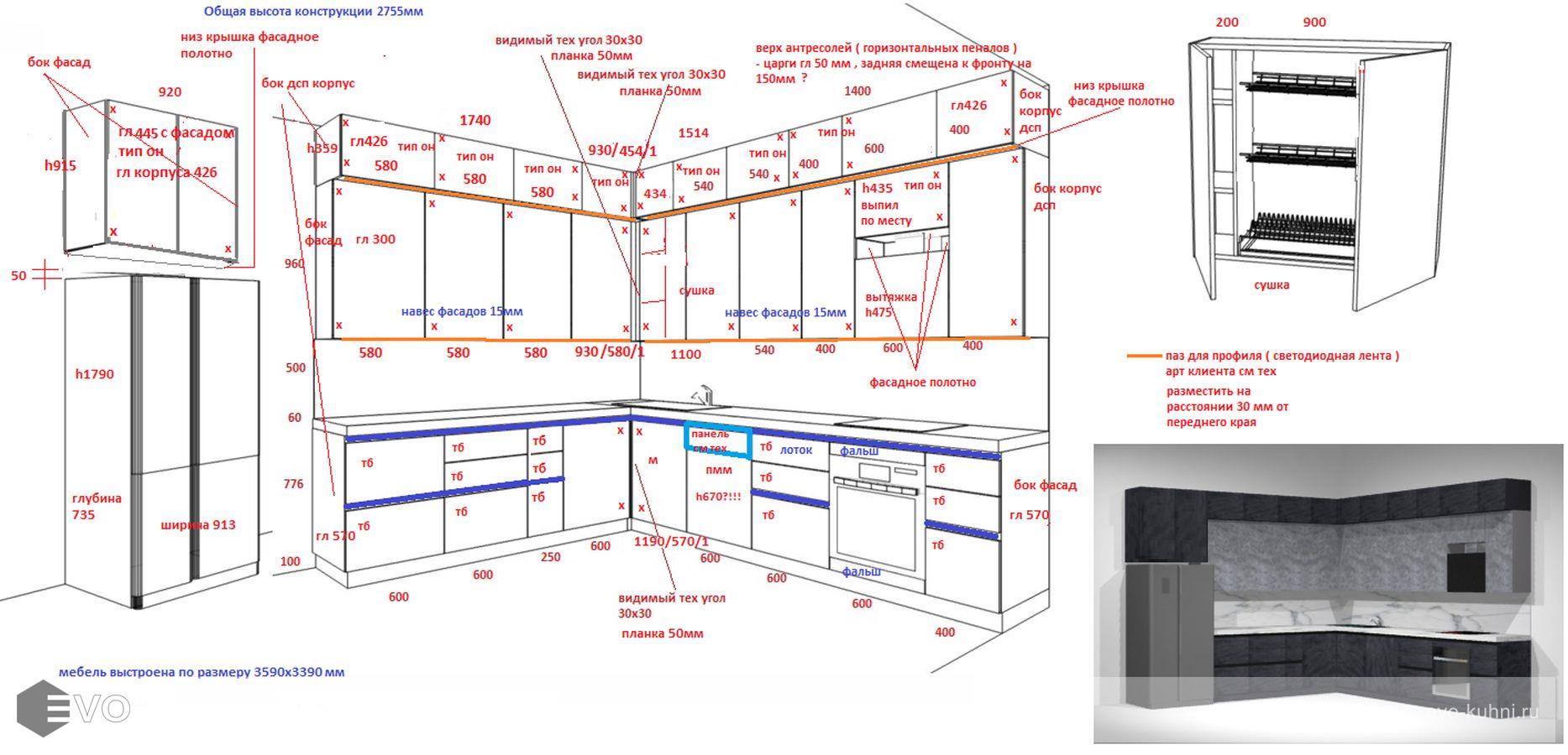 Дизайн-проект, максимально удовлетворяющий вашим пожеланиям, мы делаем бесплатно. Наши менеджеры-дизайнеры помогут вам определиться с моделью вашей будущей кухни, грамотно подберут встраиваемую технику, подберут цветовую гамму самой кухни исходя из стилистики интерьера и пожеланий клиента, составят технически грамотный проект под размеры помещения.