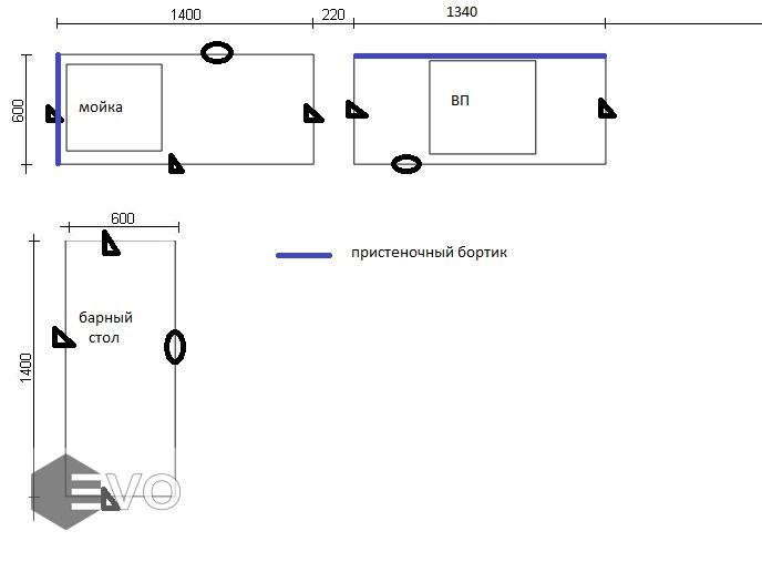 - Мойка и смеситель клиента.