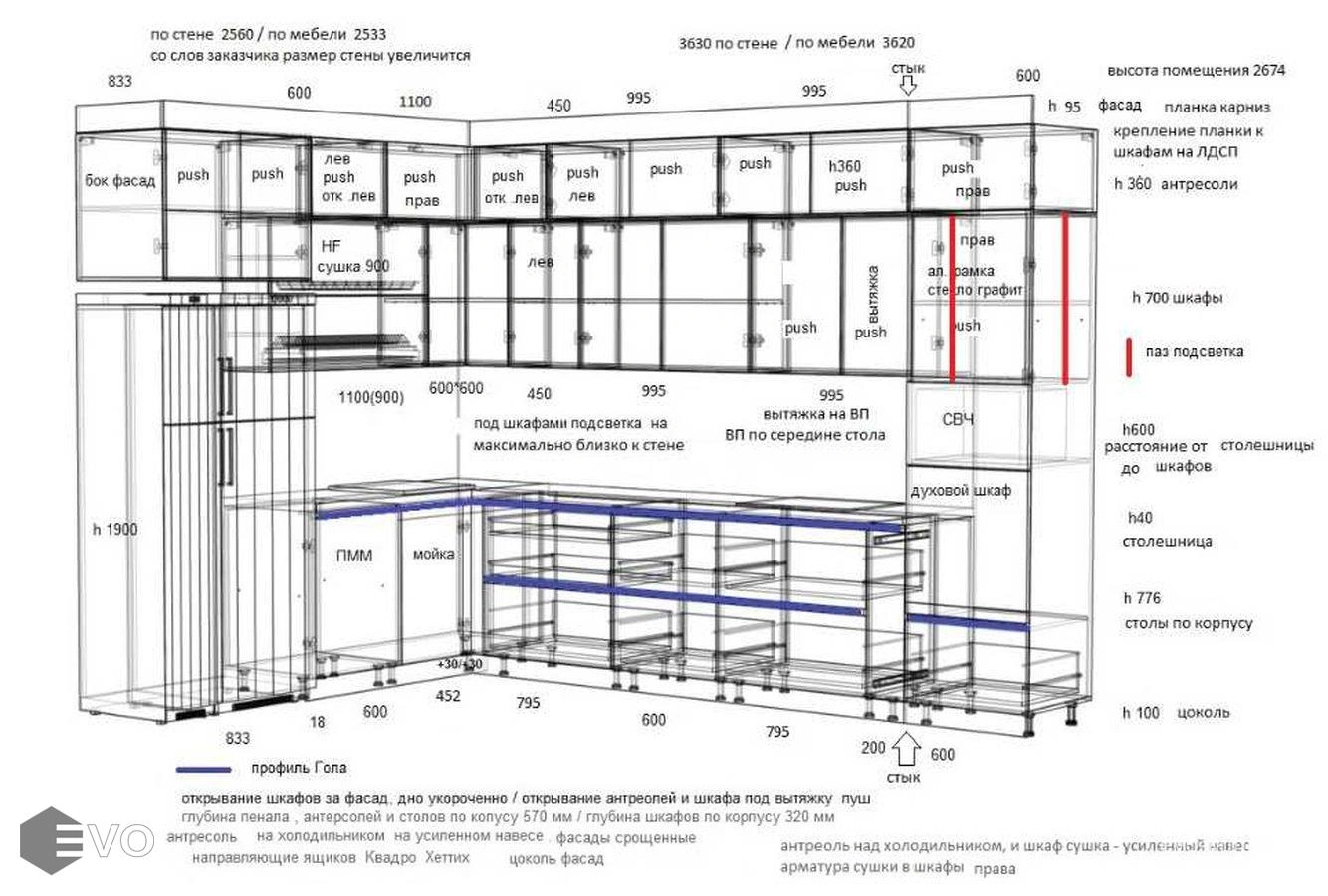 Дизайн-проект, максимально удовлетворяющий вашим пожеланиям, мы делаем бесплатно. Наши менеджеры-дизайнеры помогут вам определиться с моделью вашей будущей кухни, грамотно подберут встраиваемую технику, подберут цветовую гамму самой кухни исходя из стилистики интерьера и пожеланий клиента, составят технически грамотный проект под размеры помещения.