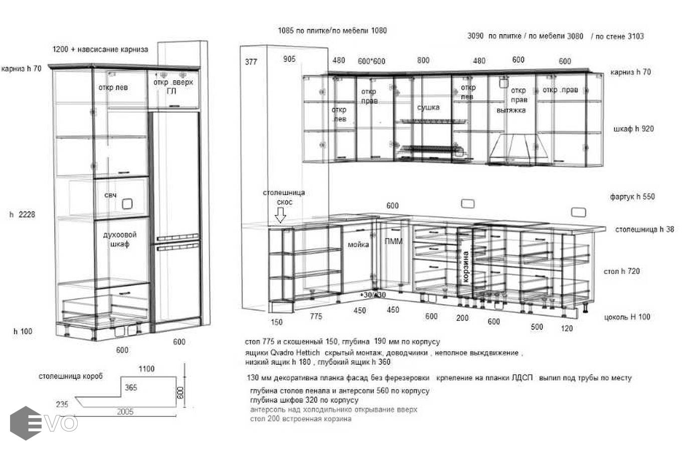 Дизайн-проект, максимально удовлетворяющий вашим пожеланиям, мы делаем бесплатно. Наши менеджеры-дизайнеры помогут вам определиться с моделью вашей будущей кухни, грамотно подберут встраиваемую технику, подберут цветовую гамму самой кухни исходя из стилистики интерьера и пожеланий клиента, составят технически грамотный проект под размеры помещения.