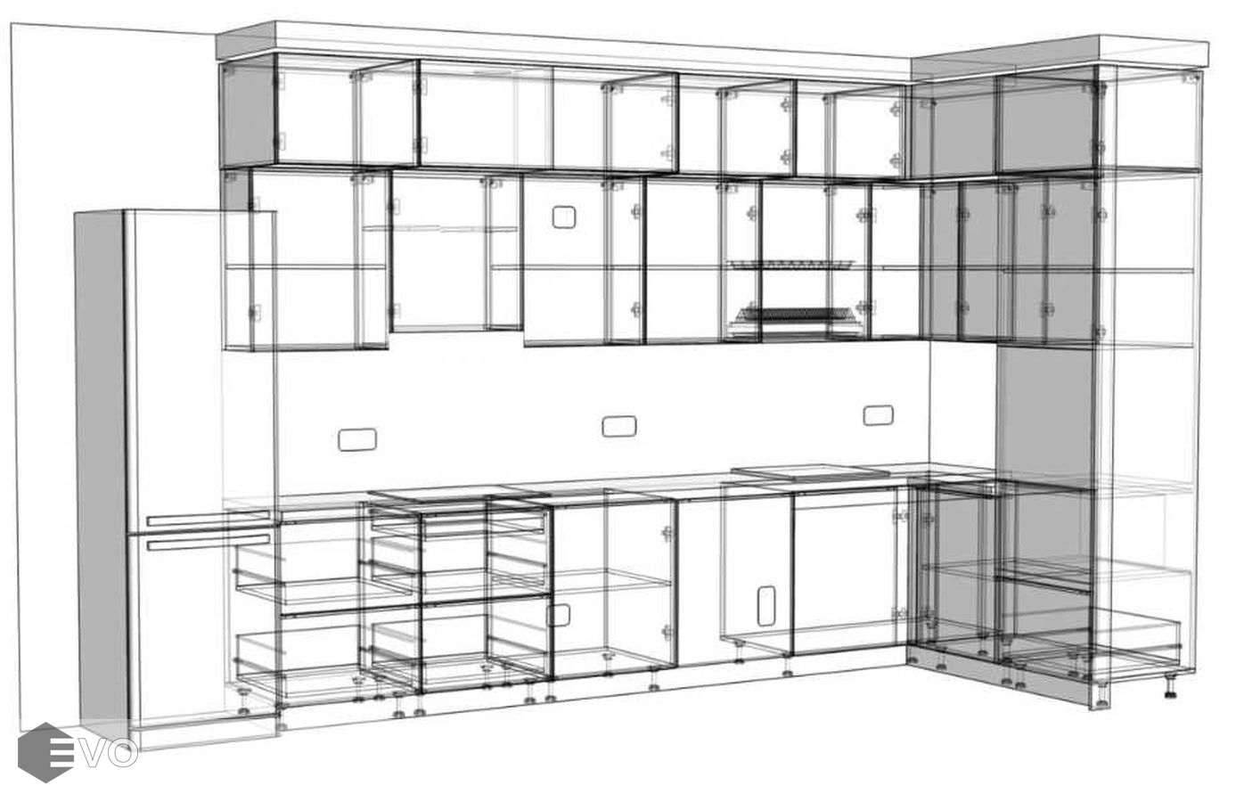 Кухни все изготавливаются по индивидуальному заказу. Мы подготовим дизайн-проект под любое помещение и конфигурацию. В зависимости от выбранных фасадов сможем изготовить нестандартные модули и размеры. Однако есть редкие исключения видов фасадов, по которым невозможны нестандарты, об этом вас предупредит дизайнер при выборе материалов для проекта.