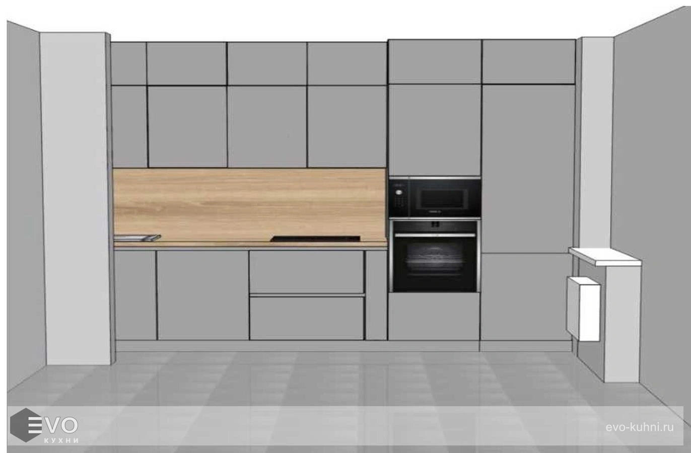 Кухни все изготавливаются по индивидуальному заказу. Мы подготовим дизайн-проект под любое помещение и конфигурацию. В зависимости от выбранных фасадов сможем изготовить нестандартные модули и размеры. Однако есть редкие исключения видов фасадов, по которым невозможны нестандарты, об этом вас предупредит дизайнер при выборе материалов для проекта.