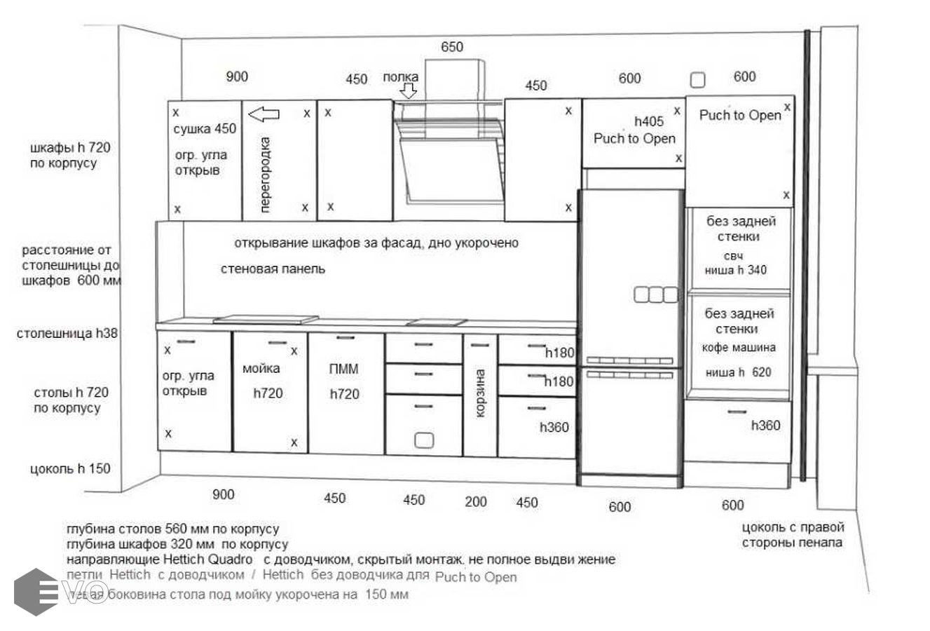 Дизайн-проект, максимально удовлетворяющий вашим пожеланиям, мы делаем бесплатно. Наши менеджеры-дизайнеры помогут вам определиться с моделью вашей будущей кухни, грамотно подберут встраиваемую технику, подберут цветовую гамму самой кухни исходя из стилистики интерьера и пожеланий клиента, составят технически грамотный проект под размеры помещения.