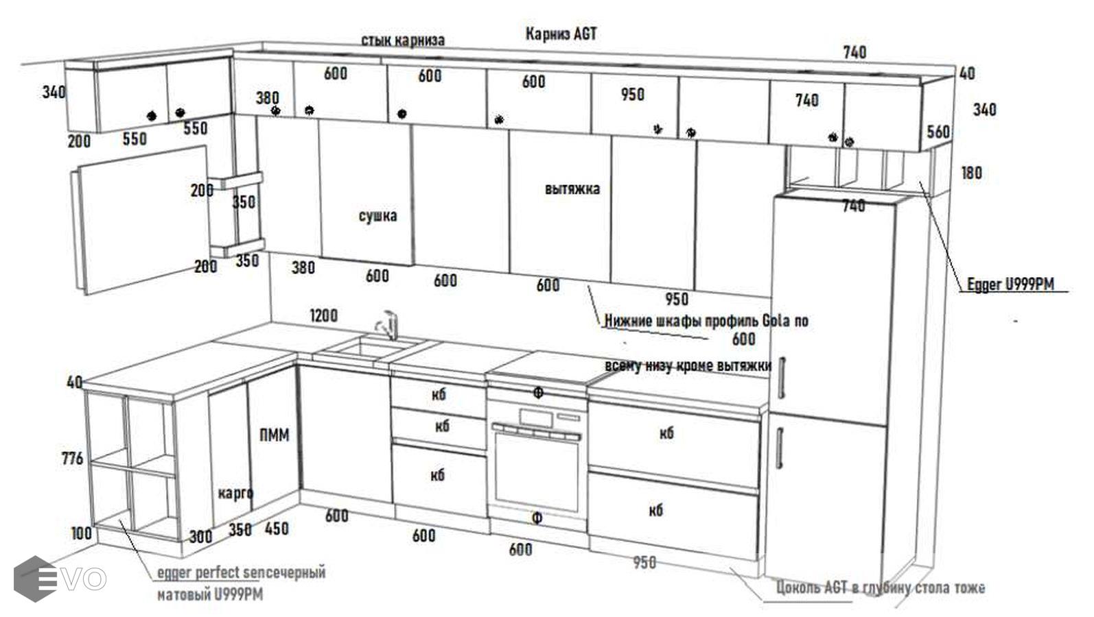 Кухни все изготавливаются по индивидуальному заказу. Мы подготовим дизайн-проект под любое помещение и конфигурацию. В зависимости от выбранных фасадов сможем изготовить нестандартные модули и размеры. Однако есть редкие исключения видов фасадов, по которым невозможны нестандарты, об этом вас предупредит дизайнер при выборе материалов для проекта.