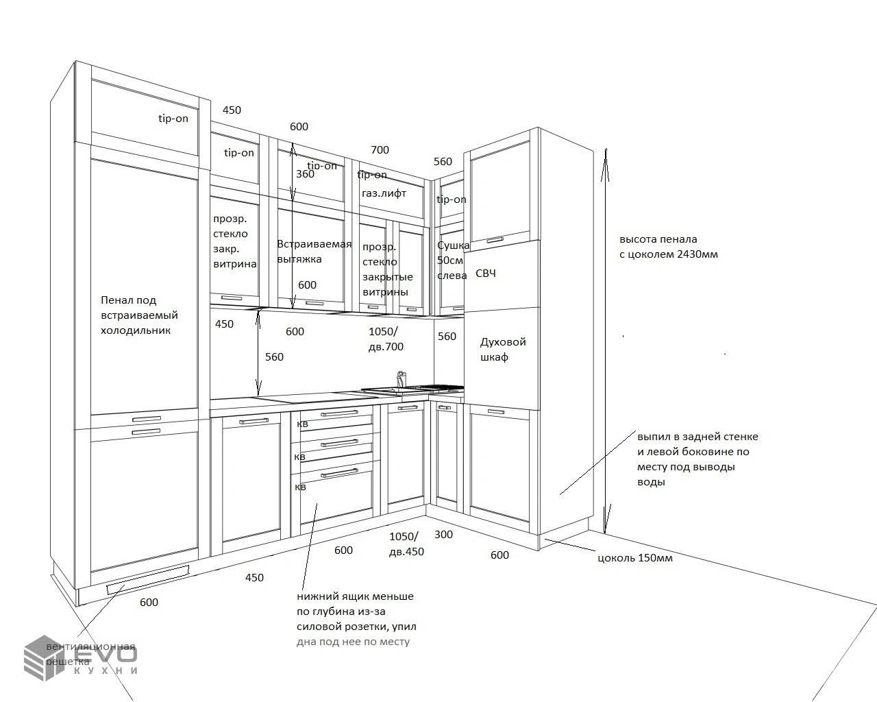 Дизайн-проект, максимально удовлетворяющий вашим пожеланиям, мы делаем бесплатно. Наши менеджеры-дизайнеры помогут вам определиться с моделью вашей будущей кухни, грамотно подберут встраиваемую технику, подберут цветовую гамму самой кухни исходя из стилистики интерьера и пожеланий клиента, составят технически грамотный проект под размеры помещения.