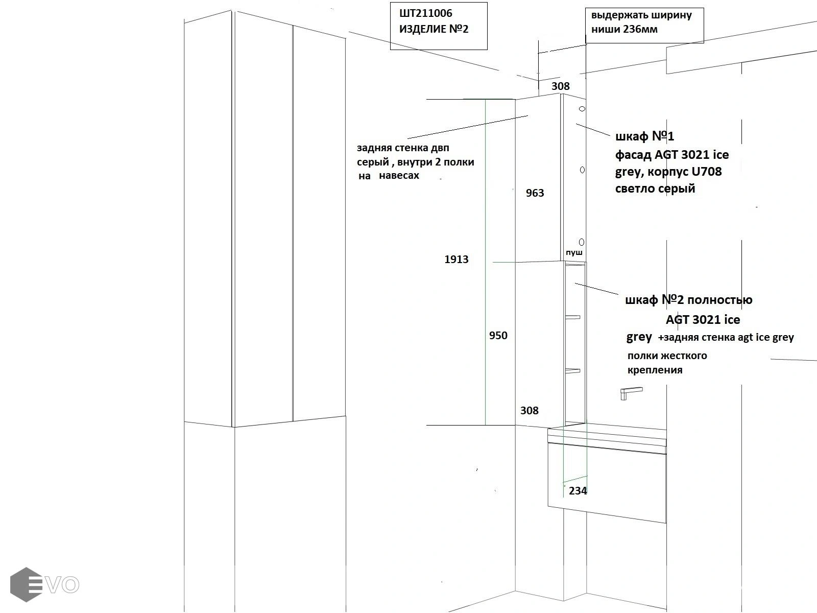Кухни все изготавливаются по индивидуальному заказу. Мы подготовим дизайн-проект под любое помещение и конфигурацию. В зависимости от выбранных фасадов сможем изготовить нестандартные модули и размеры. Однако есть редкие исключения видов фасадов, по которым невозможны нестандарты, об этом вас предупредит дизайнер при выборе материалов для проекта.