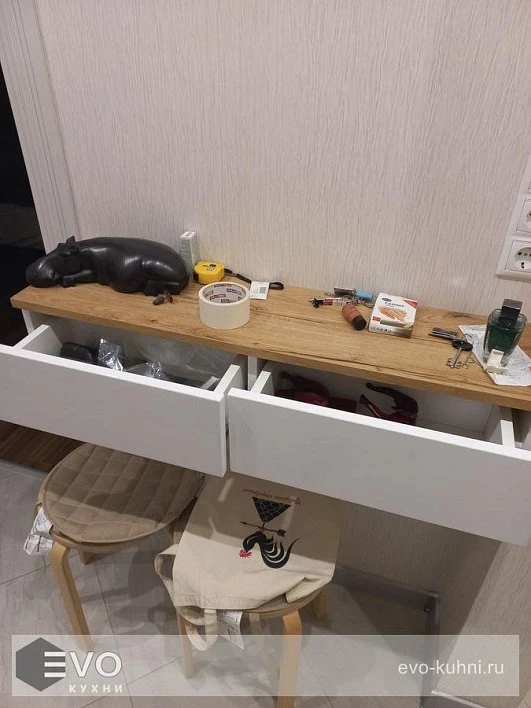 Кухни все изготавливаются по индивидуальному заказу. Мы подготовим дизайн-проект под любое помещение и конфигурацию. В зависимости от выбранных фасадов сможем изготовить нестандартные модули и размеры. Однако есть редкие исключения видов фасадов, по которым невозможны нестандарты, об этом вас предупредит дизайнер при выборе материалов для проекта.