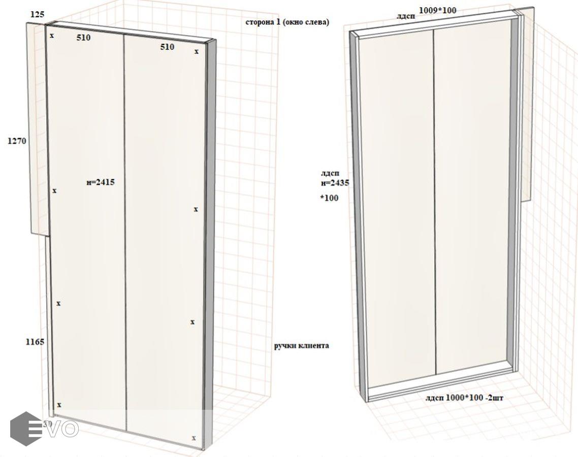 Встроенный шкаф на лоджию РБ230303Ш