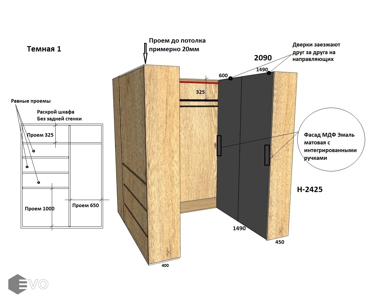 | Фасады: | МДФ Эмаль Интегрированная ручка Матовые |