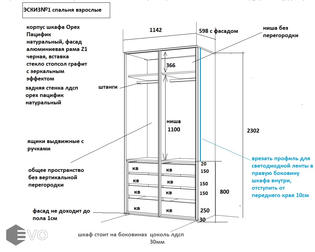 | Фасады: | ЛДСП Пленка Стекло |